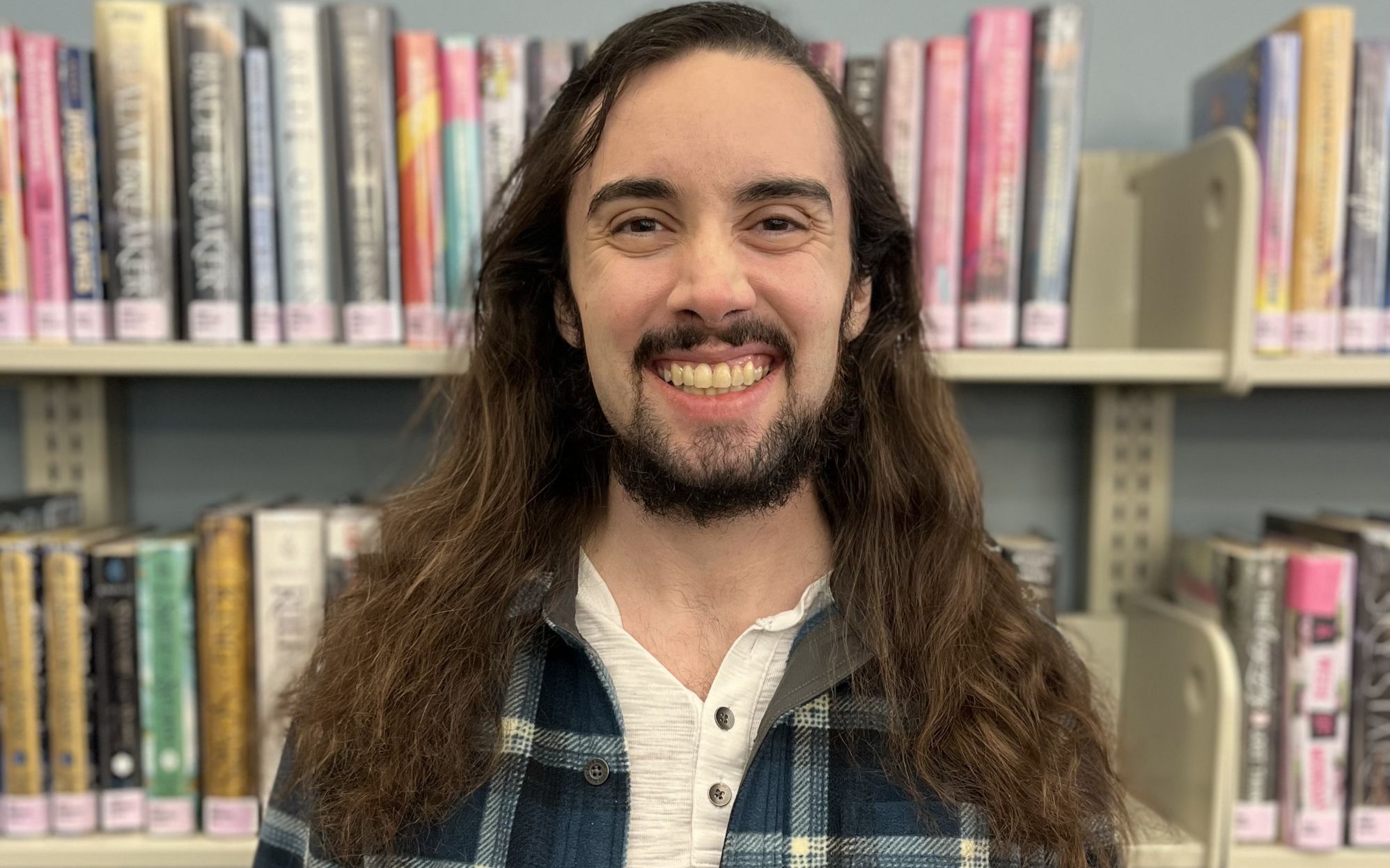 Aron leads teen programming. He enjoys reading manga, graphic novels, audiobooks, and poetry. He also loves writing poetry, playing video games, and hanging out with his banana ball python GG.